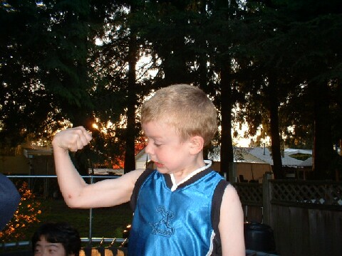 | 次男のソロモンがしきりに「僕、筋肉があるんだよ!」と見せ付けてくる右腕。しかし腕よりもきばった顔につい目がいってしまう(笑) |